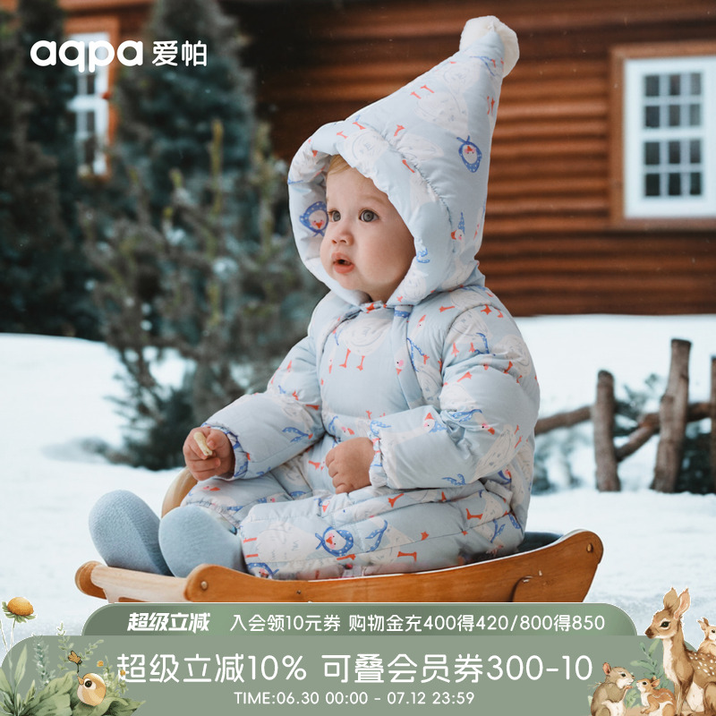 aqpa愛帕嬰兒羽絨服連體衣冬季加厚保暖新生兒寶寶外出服羽絨爬服