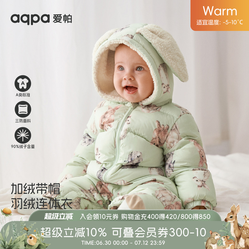 aqpa愛帕嬰兒連體羽絨服冬季保暖加厚小月齡新生兒寶寶衣服外出服