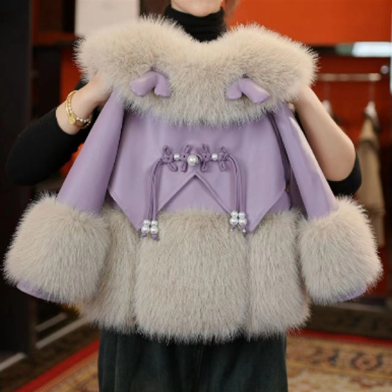 速發Fur coat extra long hair colorful fox fur ladies short p