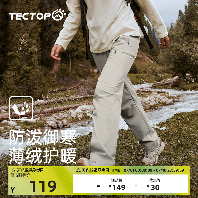 TECTOP探拓戶外加絨軟殼褲女秋冬季長褲防風防潑水登山徒步沖鋒褲