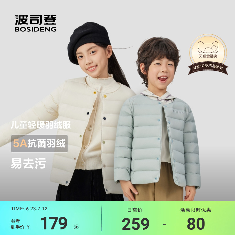 波司登兒童羽絨服女童立領輕薄羽絨服兒童外套四防抗菌25年秋新品