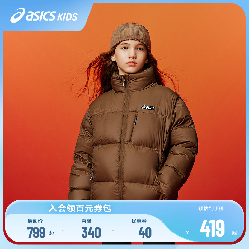 ASICS/亞瑟士童裝25年冬季男女童短款泡芙面包服輕量蓬松羽絨服