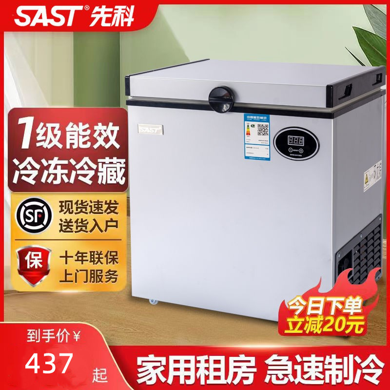 SAST先科小冰柜家用冷柜商用臥式大容量冷藏冷凍租房小型冰箱節能