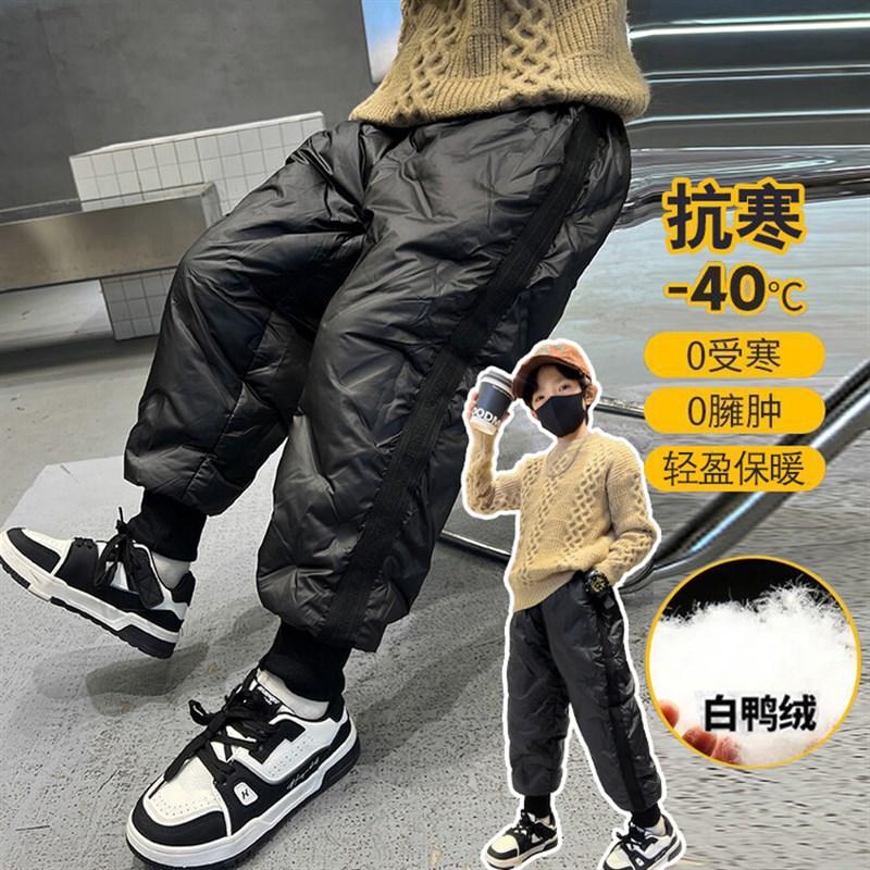 象老大兒童羽絨褲外穿白鴨絨加厚中大童男童女童時尚運動一體棉褲