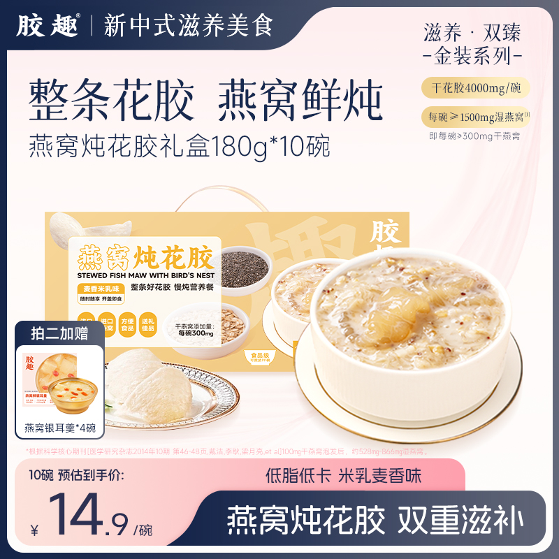 膠趣燕窩燉花膠禮盒裝180g*10/箱即食花膠燕窩麥香米乳下午茶