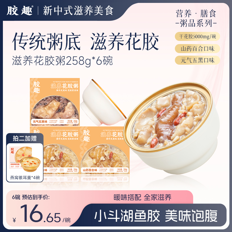 膠趣滋養花膠粥258g/碗大容量山藥百合味即食花膠魚膠美玲粥送禮