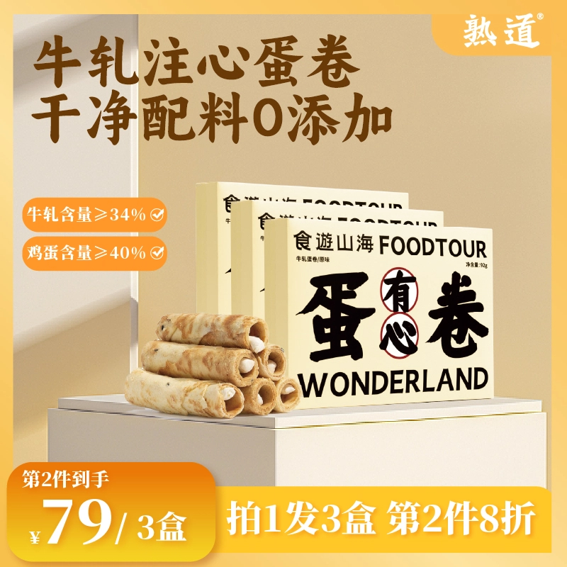 熟道有心牛軋注心雞蛋卷酥3盒裝營養早餐網紅零食