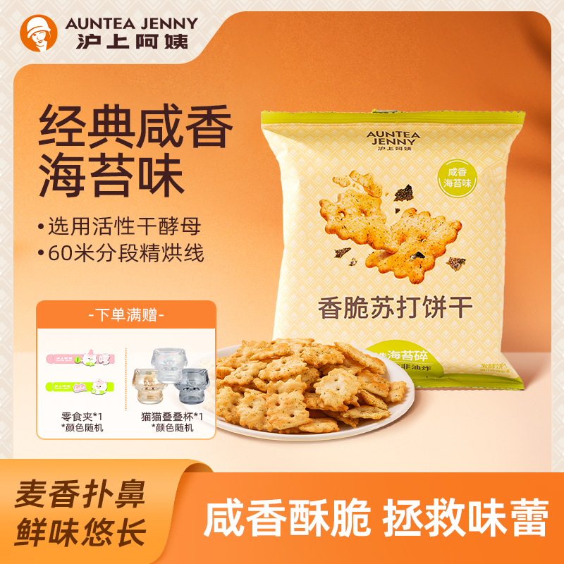 滬上阿姨咸香海苔味香脆蘇打餅干35g*7袋小零食單獨包裝