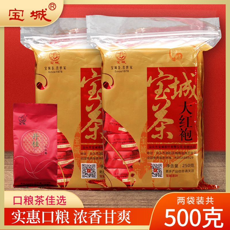 寶城丹桂大紅袍茶葉兩袋裝共500g濃香型烏龍茶潮汕口糧茶A140