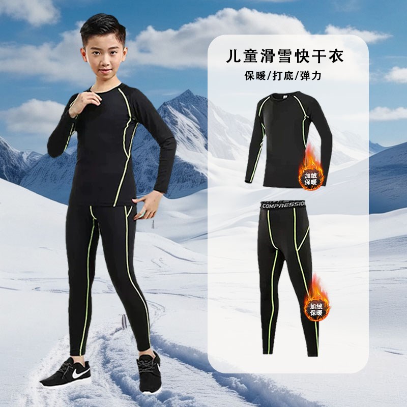 兒童速干衣滑雪服內膽加絨t冬季裝備套裝打底衫保暖內衣褲大童男