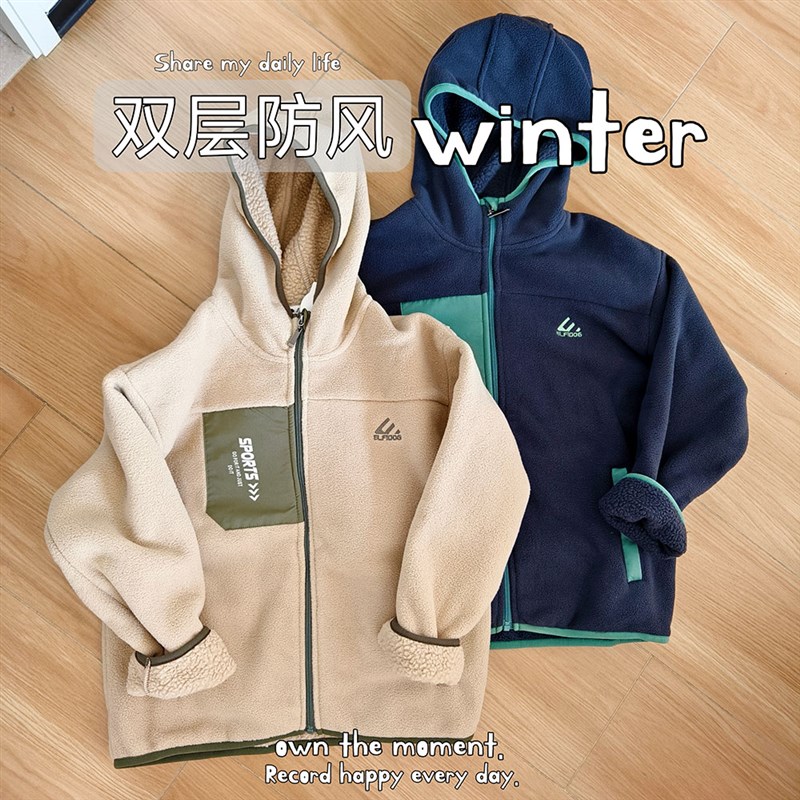 兒童連帽外套20j24秋冬加絨加厚男女童開衫韓版搖粒絨休閑保暖上