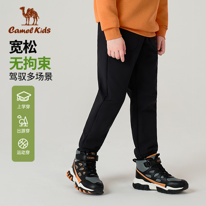 小駱駝兒童沖鋒褲戶外防水軟殼2025新款春秋男女童保暖長褲子