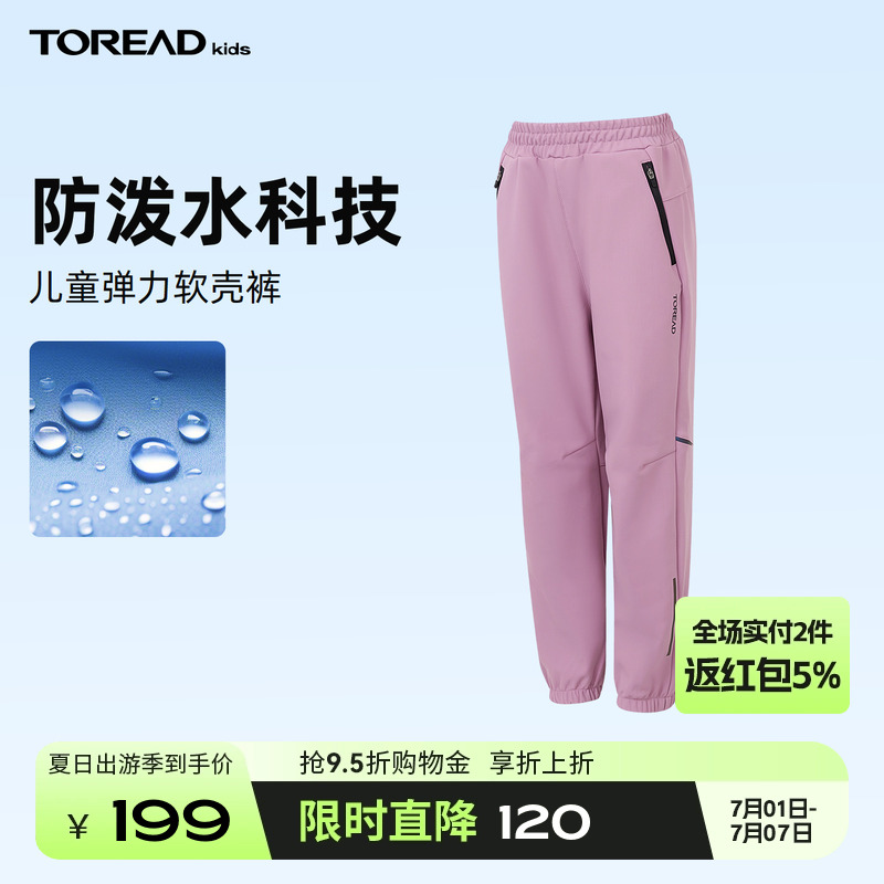 探路者兒童軟殼褲25新款男童女童秋季防潑水防風透氣運動戶外長褲