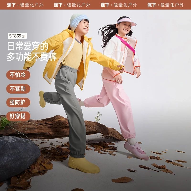 蕉下ST869??兒童彈力保暖軟殼褲秋冬戶外防風防水保暖休閑長褲