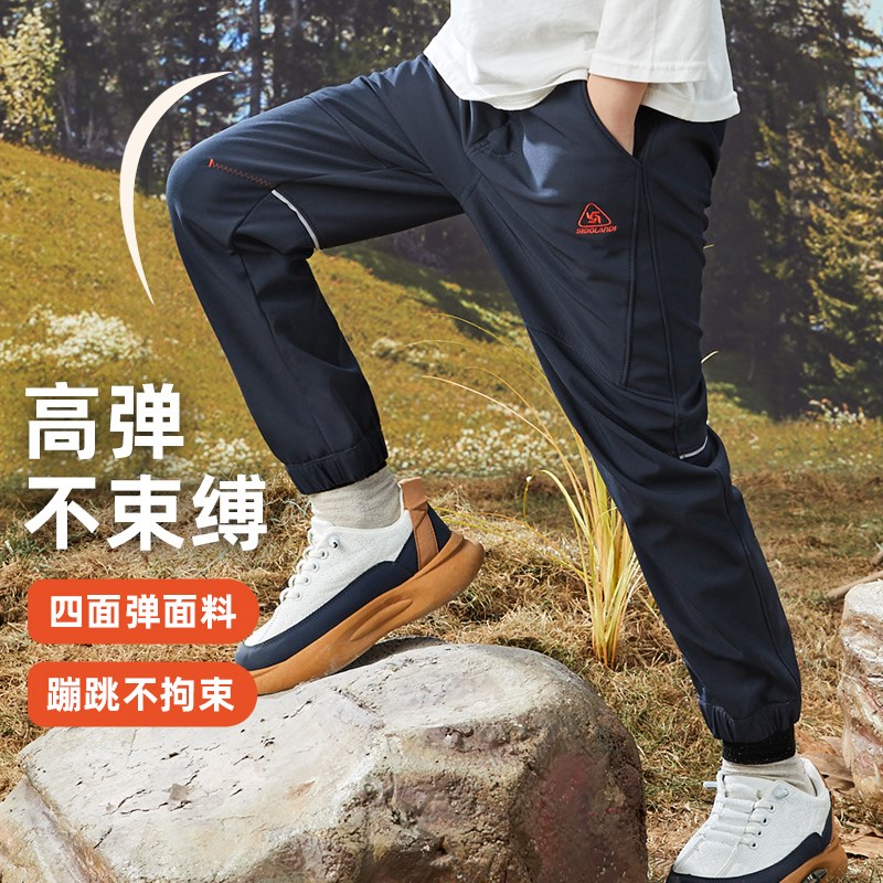 雪中飛兒童軟殼褲男童春秋款2025新款中大童休閑褲男孩春季運動褲