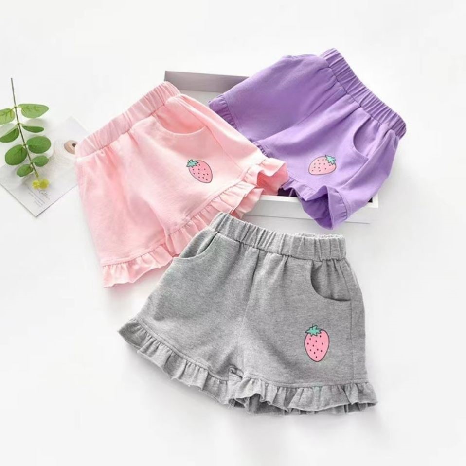 女童休閑短褲棉女寶寶夏季外穿童褲薄款兒童沙灘褲草莓短褲運動
