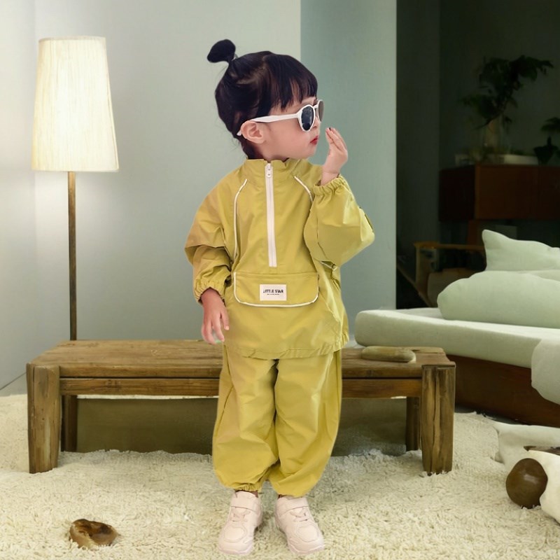 兒童沖鋒衣套裝秋冬季新款童裝男女寶寶休閑運動裝軟殼戶外防風服