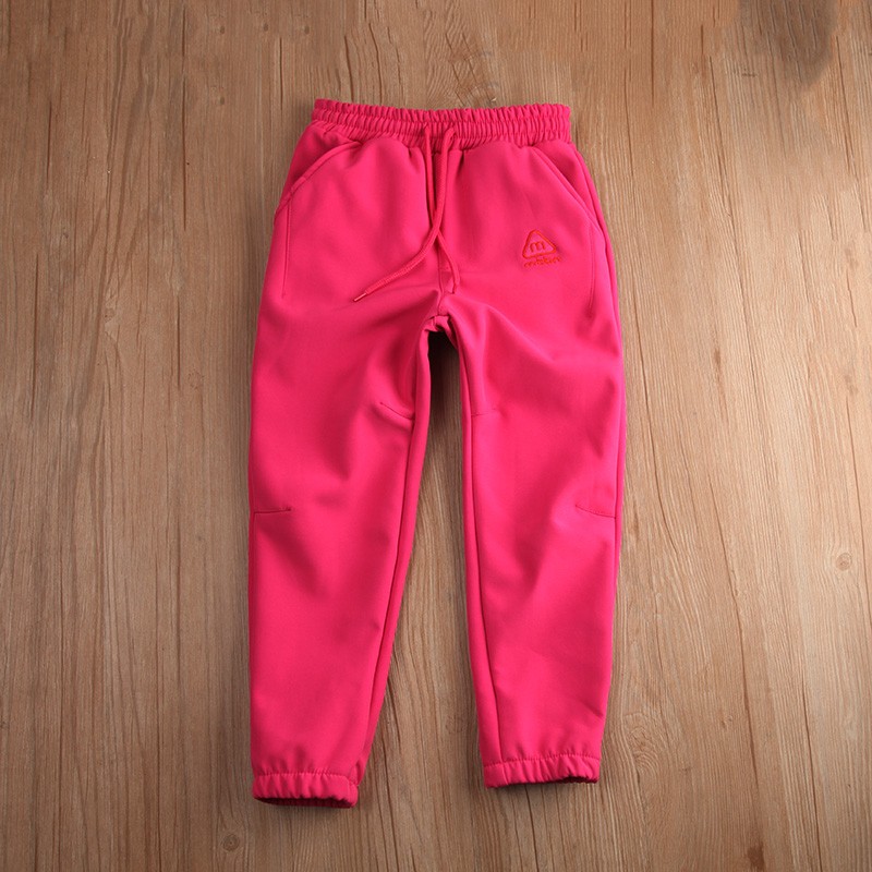 秋冬季兒童沖鋒褲軟q殼防風戶外褲子男童女童加絨加厚長褲子