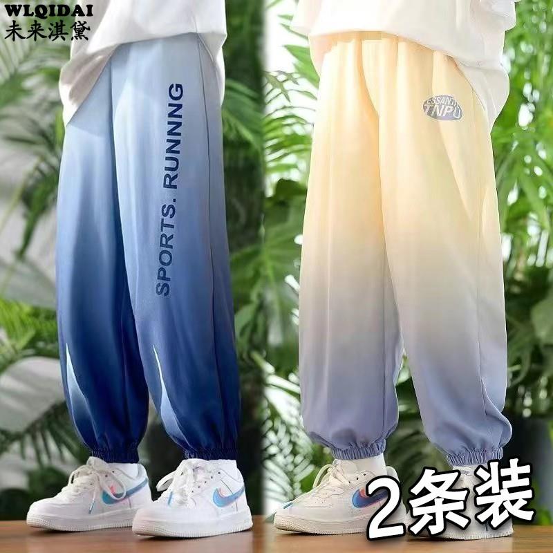 男童速干褲夏季薄款女童冰絲褲子中大童兒童夏裝寬松漸變色防蚊褲
