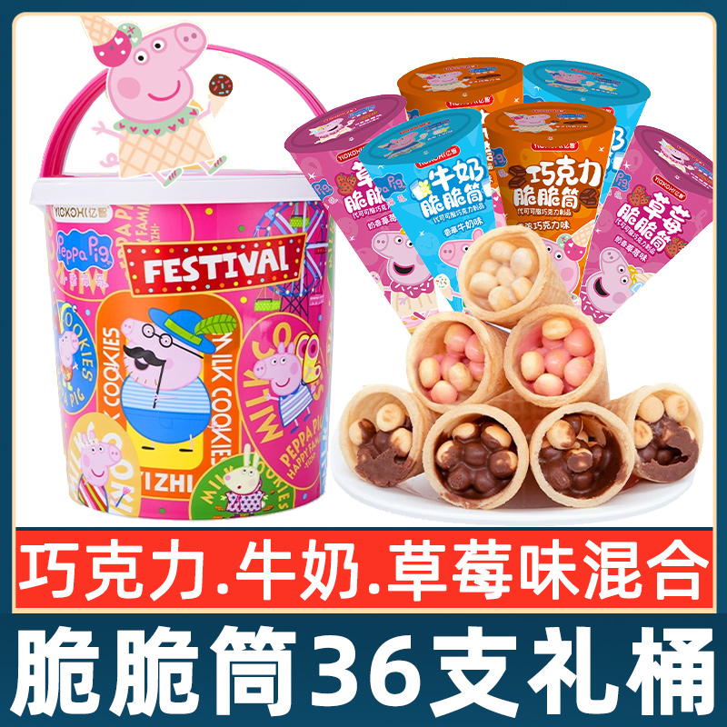 小豬佩奇脆脆筒巧克力餅干桶裝零食兒童生日送禮物(代可可脂)