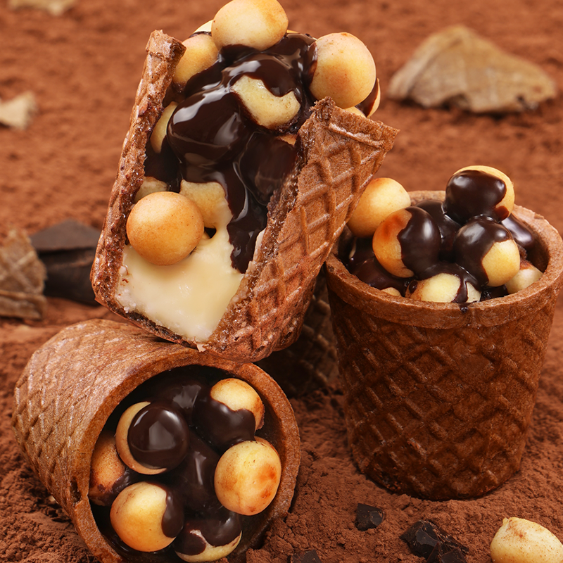 巧克力爆漿脆筒兒童冰淇淋蛋卷夾心餅干甜筒零食風味(代可可脂)
