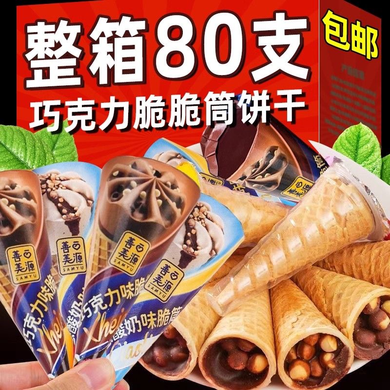 久海巧克力妙脆筒蛋筒夾心餅干冰淇淋甜筒脆皮蛋卷兒童糖果零食