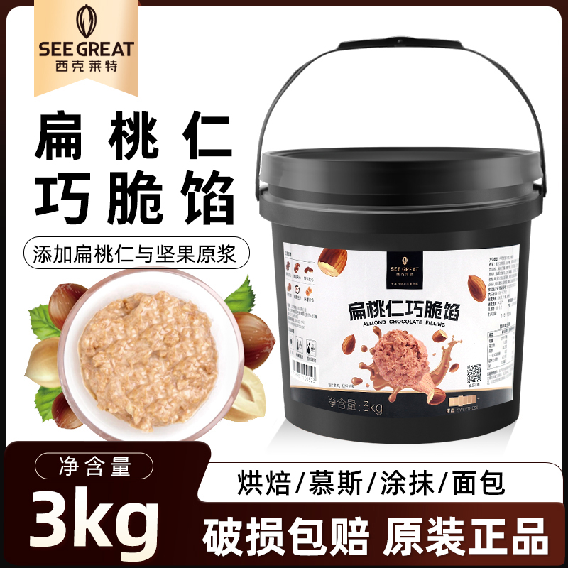 西克萊特扁桃仁巧克力醬3kg蛋糕面包夾心涂抹淋面醬薄脆餡裝飾
