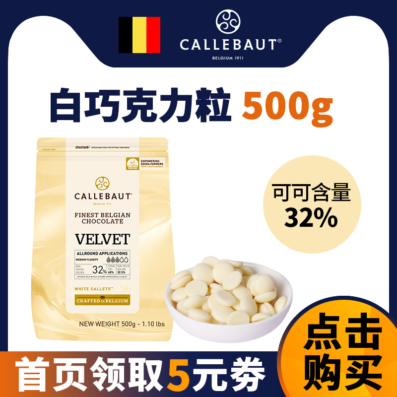 嘉利寶32%白巧克力豆幣500g 比利時原裝進口純可可脂蛋糕烘焙專用