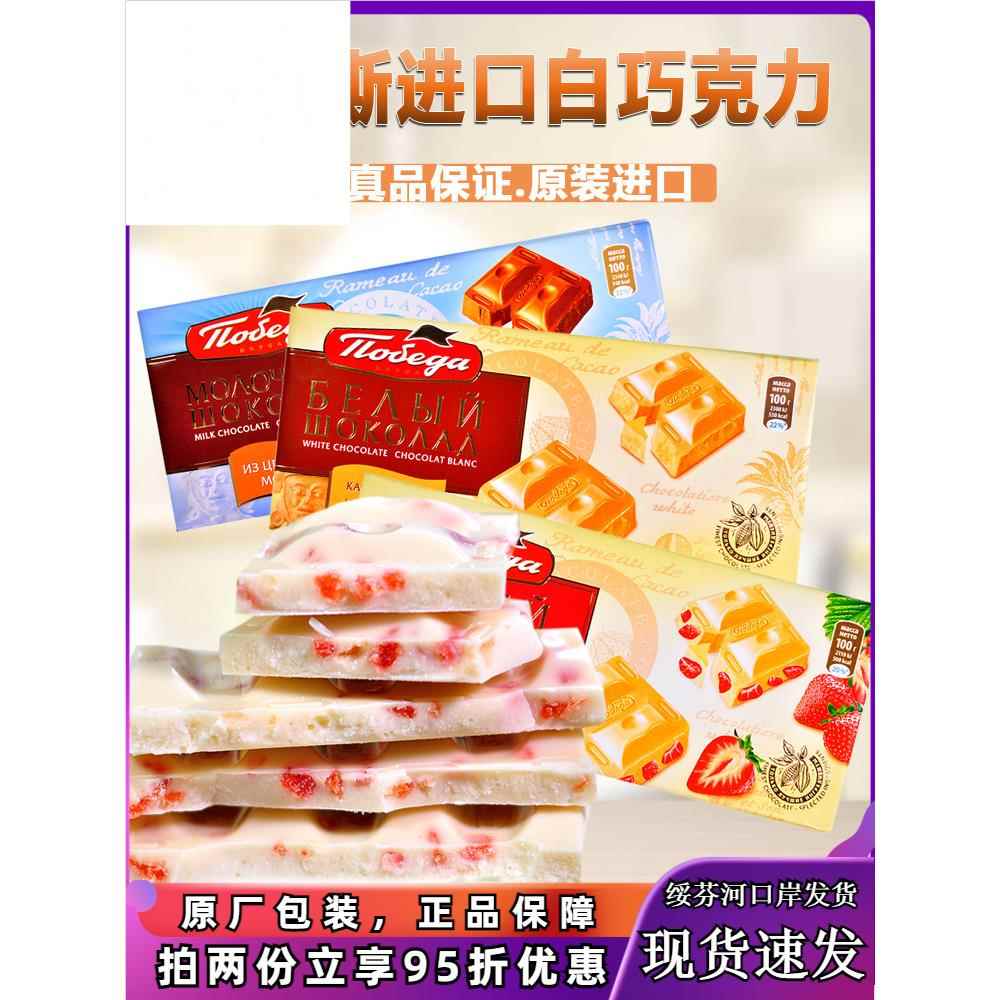 俄羅斯原裝進口純白巧克力牛奶味可可脂草莓夾心巧克力休閑零食品
