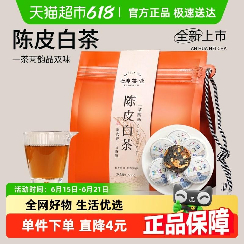 七春茶葉陳皮白茶500g福鼎白茶新會陳皮小茶餅福鼎白茶袋裝