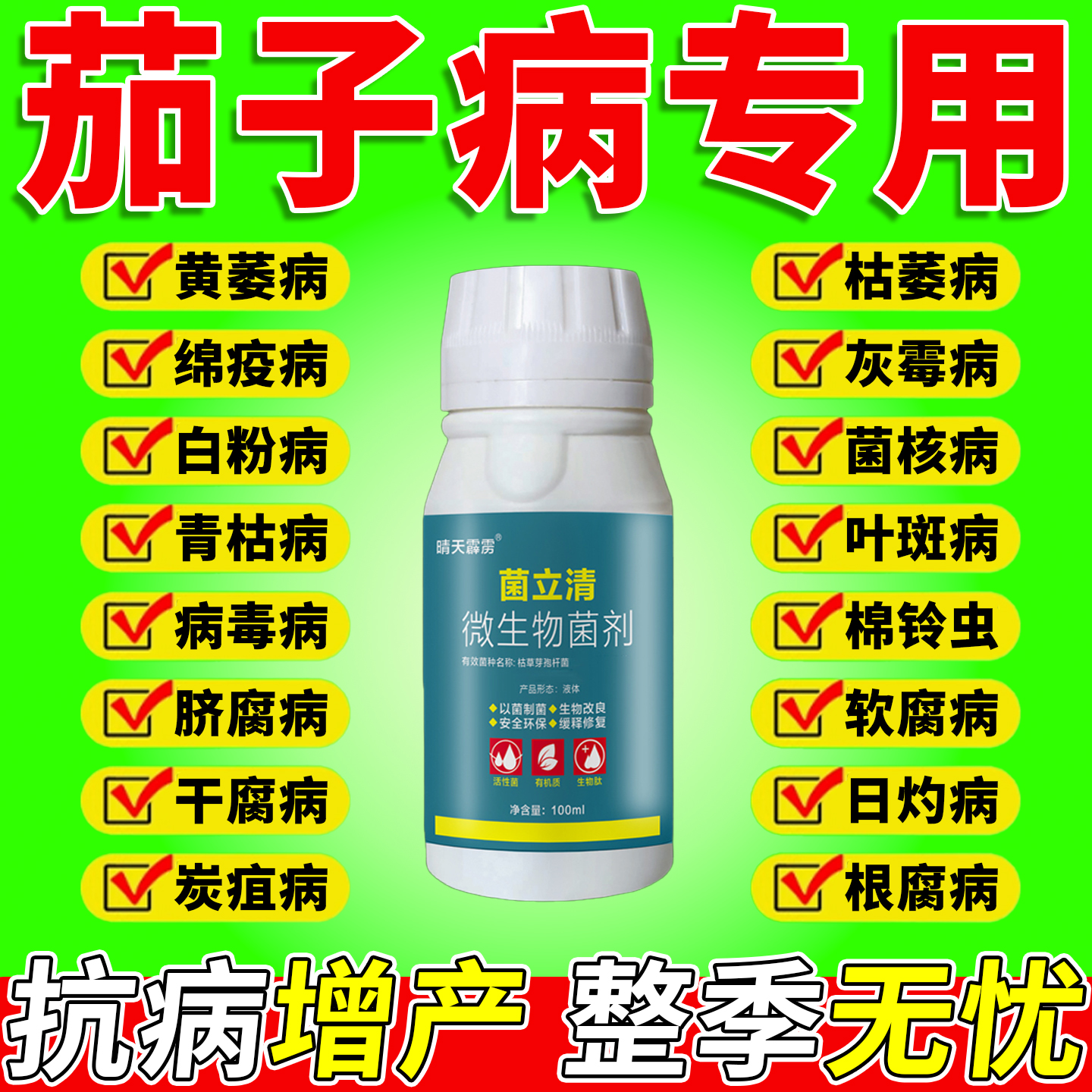 茄子黃萎炭疽靈專用藥病毒病白粉虱殺蟲殺菌劑黃葉枯萎病全治肥料
