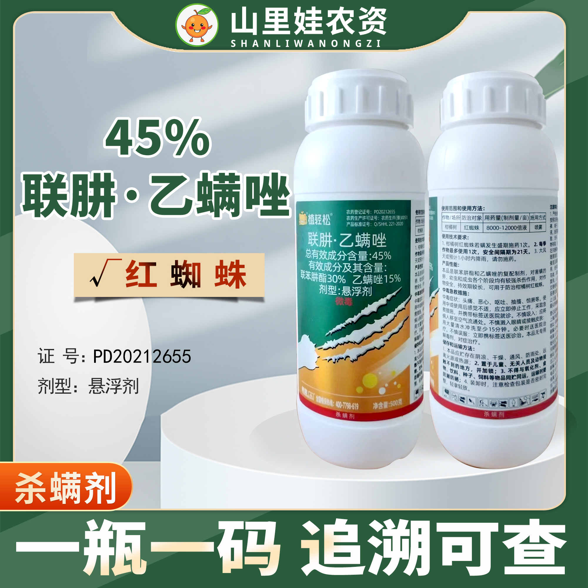 頤果到45%聯肼乙螨唑 聯苯菊酯柑橘樹紅蜘蛛懸浮劑農藥殺螨劑