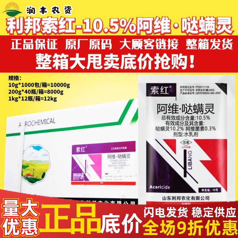 整箱利邦10.5%阿維噠螨靈 阿維菌素柑橘紅蜘蛛茶黃螨殺螨劑農藥