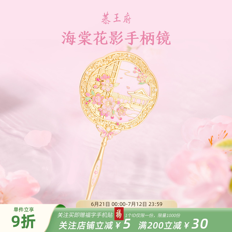 恭王府文創海棠花影手柄鏡隨身古風化妝鏡子女生日伴手禮物送女友