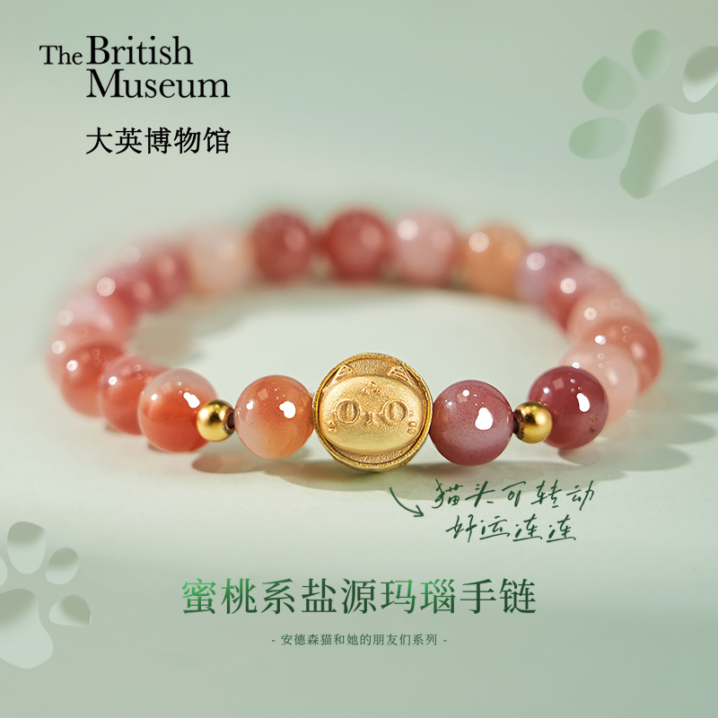 大英博物館安德森貓和她的朋友們系列蜜桃系鹽源瑪瑙手鏈七夕禮物