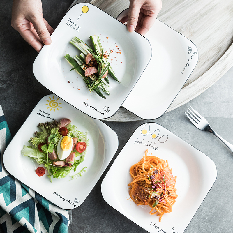 極速4個裝陶瓷盤子家用菜盤套裝愛心創意網紅湯盤V北歐餐具碟子水