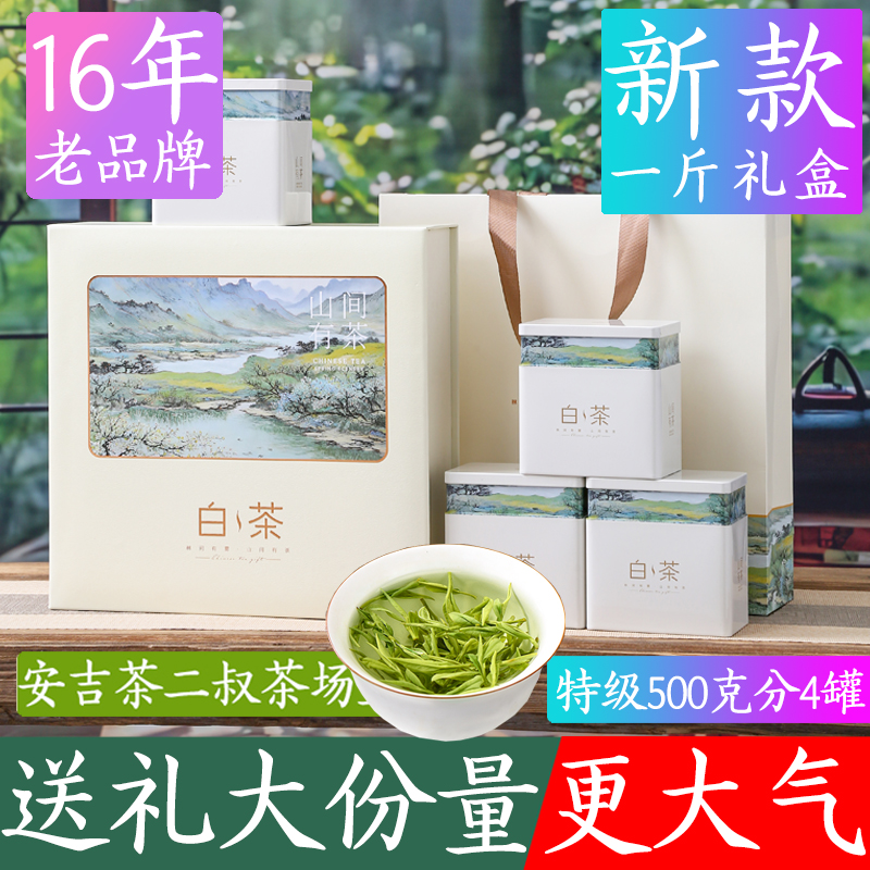 【一斤裝】茶二叔2025年安吉新茶白茶禮盒裝茶葉特級官方旗艦店