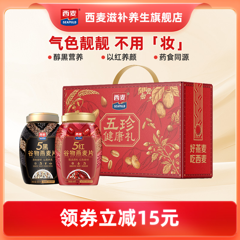 【節日禮盒】西麥五珍健康禮5黑5紅燕麥片2罐1700g膳食營養沖飲