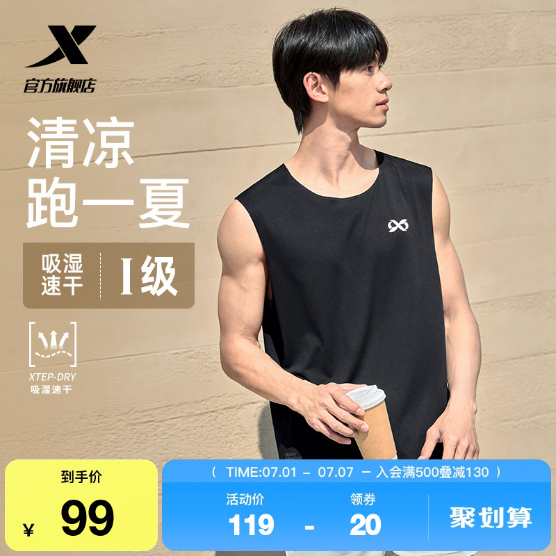 特步運動背心男2025年新款夏季潮流休閑無袖男裝籃球服運動上衣