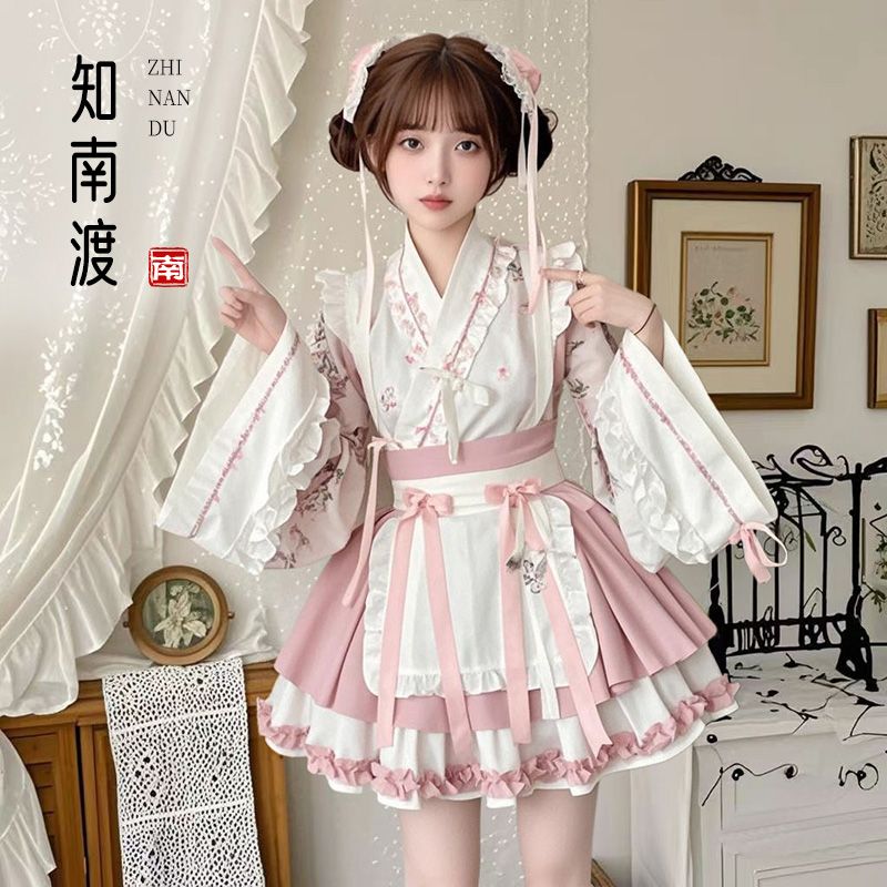 中國風漢服夏洛麗塔套裝中華風交領裙女仆純欲cos服漢元素短裙女