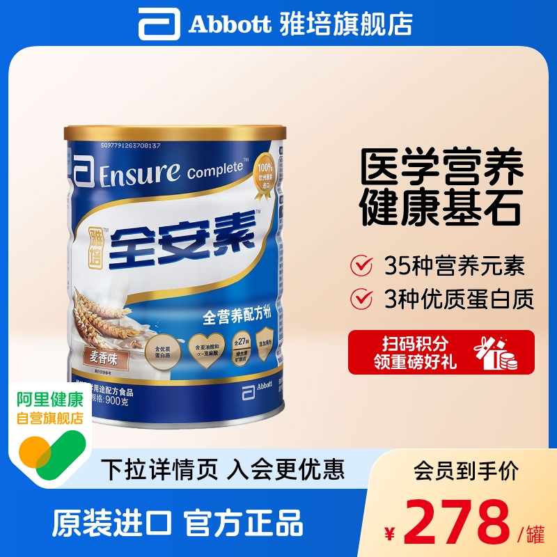 雅培全安素全營養配方粉腸內營養含蛋白質粉麥香900g官方正品