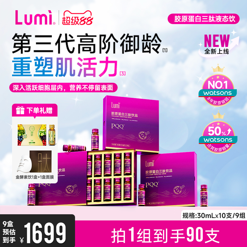 Lumi膠原蛋白三肽液態飲彈性蛋白肽小分子PQQ麥角硫因口服液正品