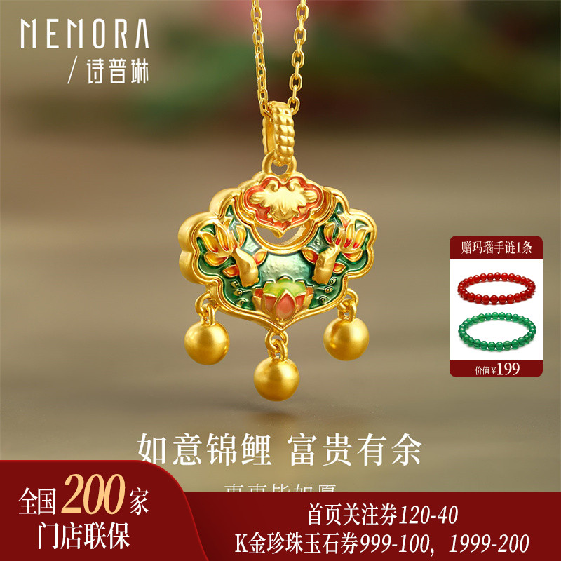 【熱銷】詩普琳珠寶如意錦鯉 18k吊墜女時尚彩金鎖包掛墜項鏈