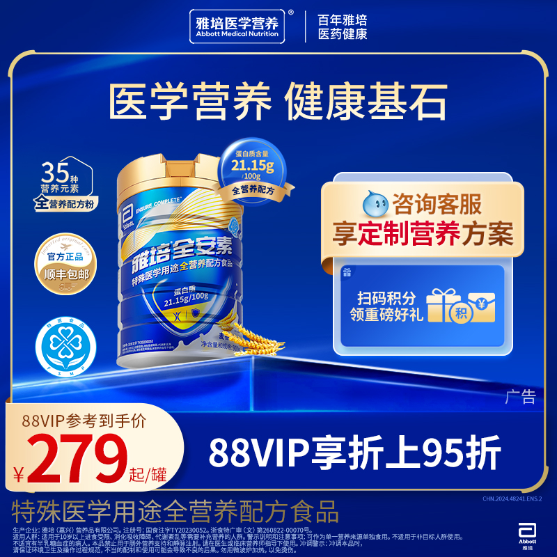 新一代雅培全安素全營養配方粉腸內營養含蛋白質粉官方旗艦店送禮