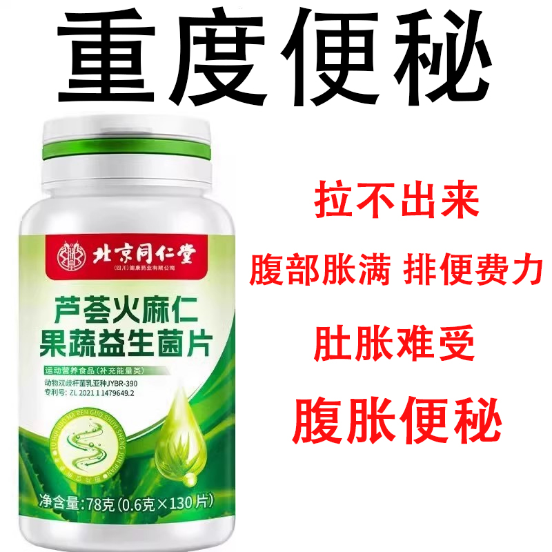 北京同仁堂蘆薈火麻仁益生菌100片清腸通便排便宿便便秘潤腸通便