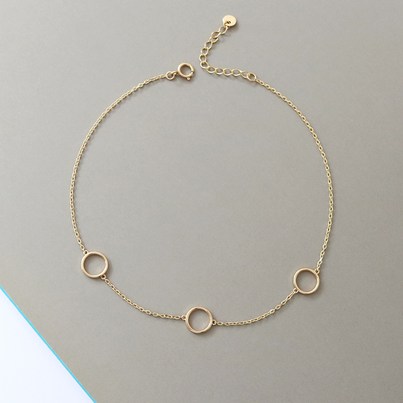 韓國進口純14k黃金腳鏈女 簡約鏤空圓環k金腳鏈腳飾禮物