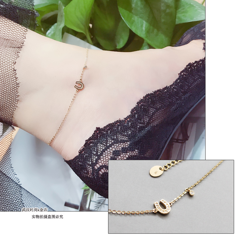 韓國純14k黃金腳鏈女 幸運滿鋯馬蹄吊墜k金腳鏈腳飾禮物