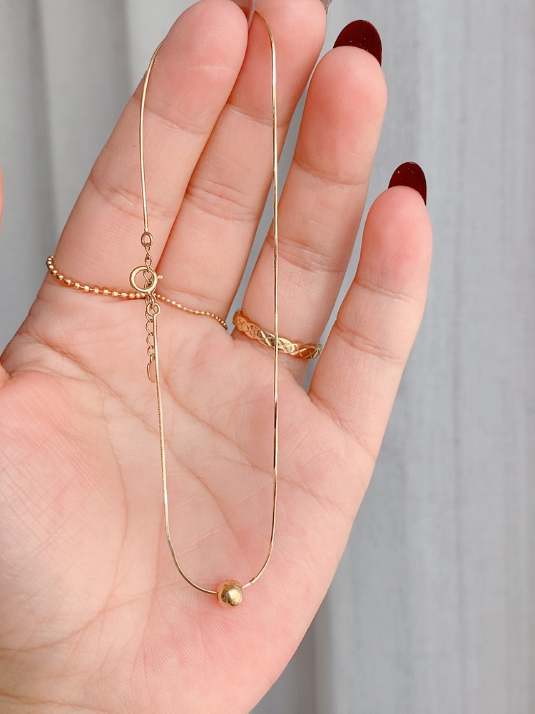 高級感~韓國純14K金素金蛇骨鏈腳鏈 輕奢風百搭金球K黃金腳飾女