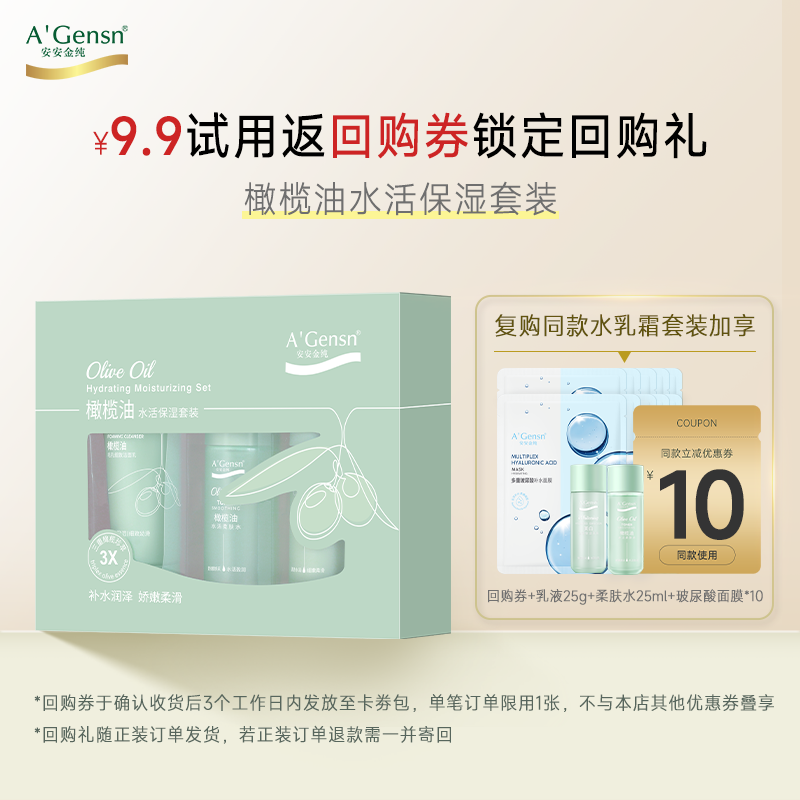 【先試后買】安安金純橄欖油水活保濕套裝潔面+柔膚水+乳液試用裝