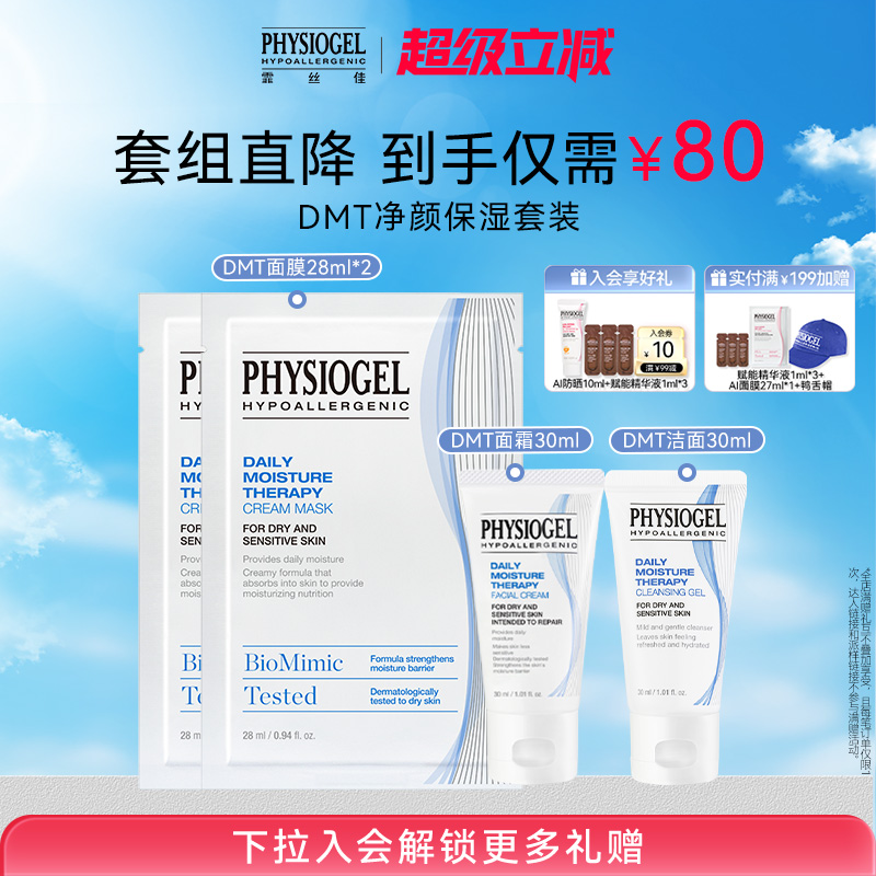 Physiogel/霏絲佳柔潤保濕霜+補水面膜+潔面旅行套裝小樣新客